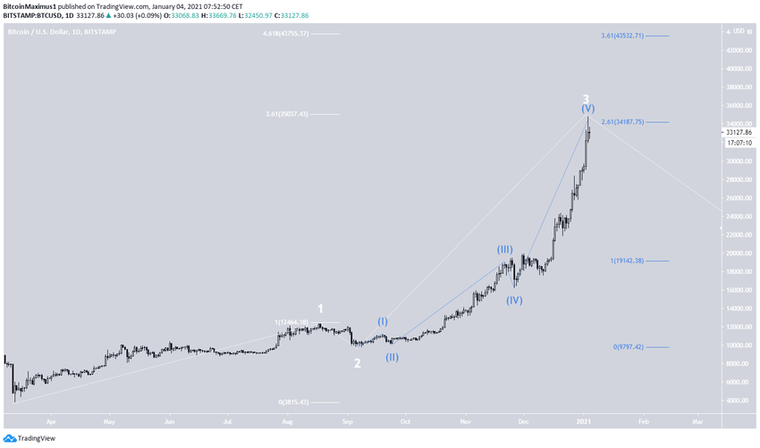 Liczba fal sugeruje, że BTC jest bardzo blisko osiągnięcia szczytu, jeśli jeszcze tego nie zrobił.