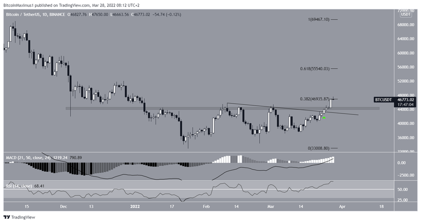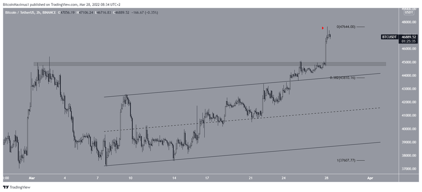 Bitcoin (BTC) gwałtownie wzrósł w dniu 27 marca, przełamując kilka krótkoterminowych poziomów oporu. Następnego dnia przekroczył już nawet poziom 47 000 USD.