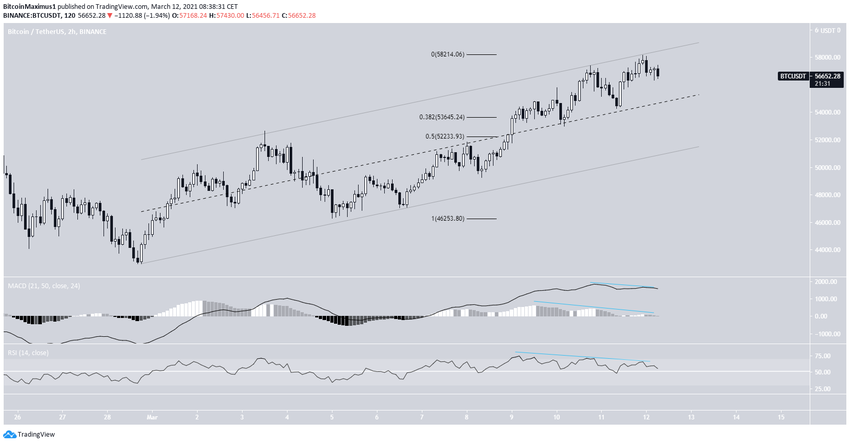 Podobnie, dwugodzinny wykres pokazuje ruch BTC w równoległym kanale rosnącym, co prawdopodobnie będzie ruchem korygującym.