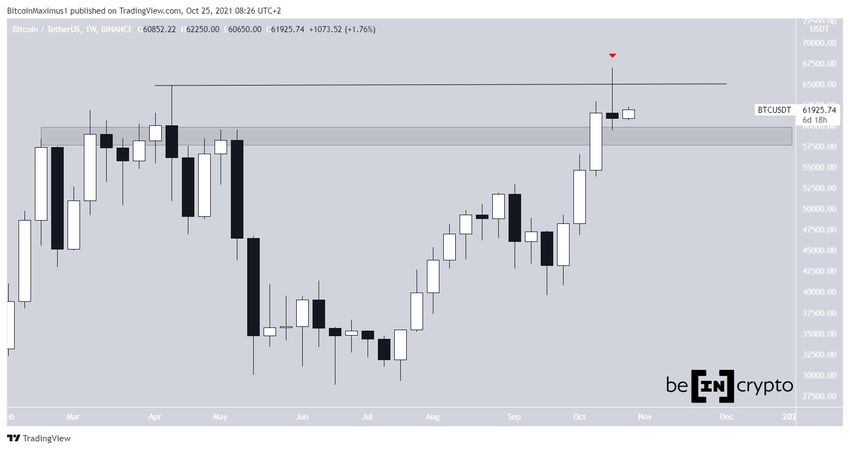 Podczas gdy Bitcoin (BTC) osiągnął nowy rekord wszech czasów (ATH) na poziomie 67 000 USD w tygodniu 18-22 października, spadł nieznacznie w weekend. Cena zamknięcia tygodnia była o około 800 USD niższa niż cena otwarcia.