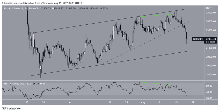 Bitcoin (BTC) osiągnął lokalny dołek na poziomie 21 447 USD w dniu 19 sierpnia. W ten sposób kontynuuje ciągły spadek, który rozpoczął się 15 sierpnia.