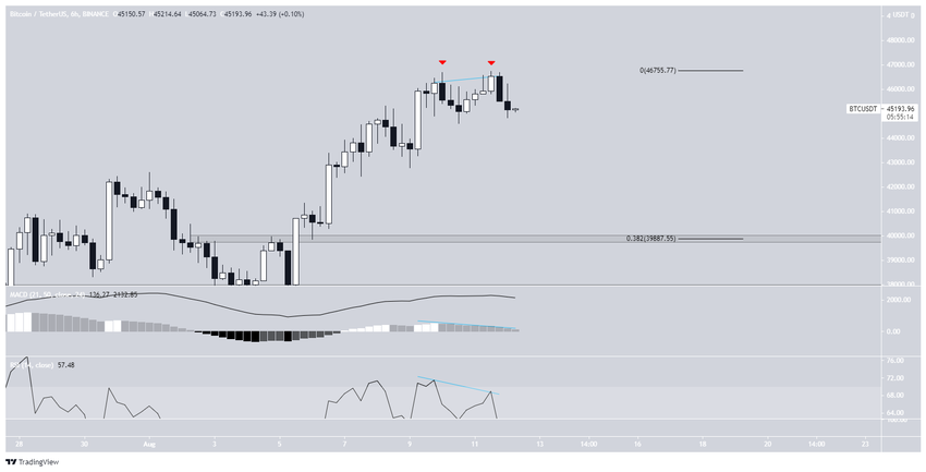 Bitcoin (BTC) zdołał osiągnąć szczyt na poziomie 46 743 USD w dniu 11 sierpnia, ale został odrzucony niemal natychmiast po tym.