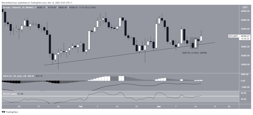 Cena Bitcoina (BTC) znacznie wzrosła w dniu 16 marca, osiągając lokalny szczyt na poziomie 41 718 USD. Została jednak szybko odrzucona i od tego czasu nieznacznie spadła.