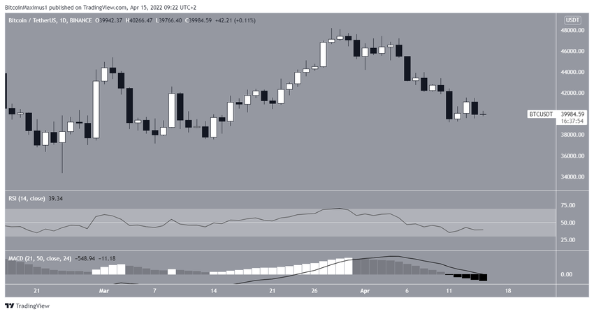 Dzienny interwał przedstawia niedźwiedzią perspektywę dla BTC z powodu spadających wskaźników MACD i RSI. Pierwszy z nich jest już poniżej 50, podczas gdy drugi jest negatywny. Są to oznaki niedźwiedziego trendu i sugerują, że prawdopodobne jest osiągnięcie nowych dołków.