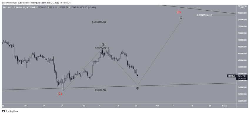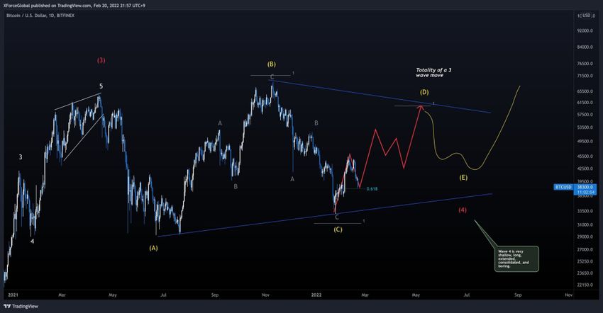 W jej ramach cena Bitcoina znajduje się obecnie w fazie C i ostatniego spadku.