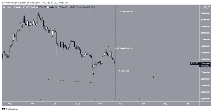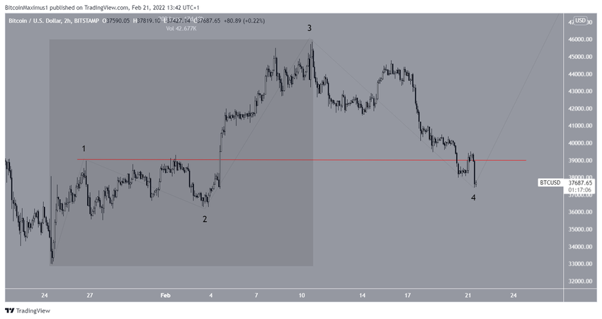W tym scenariuszu korekta BTC zakończyła się w dniu 24 stycznia. Liczba podfal jest zaznaczona na czarno.