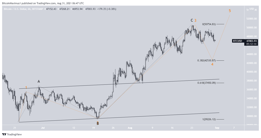 Przebicie poniżej horyzontalnego obszaru wsparcia przy 46 700 USD prawdopodobnie spowodowałoby gwałtowny spadek.