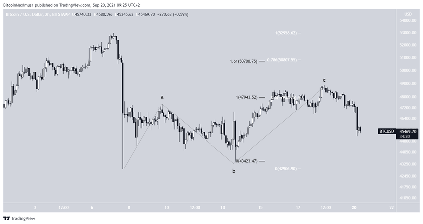 Jednak od tego czasu stracił obszar mniejszego wsparcia na 47 000 USD i wydaje się, że znajduje się w fali C struktury korekcyjnej.