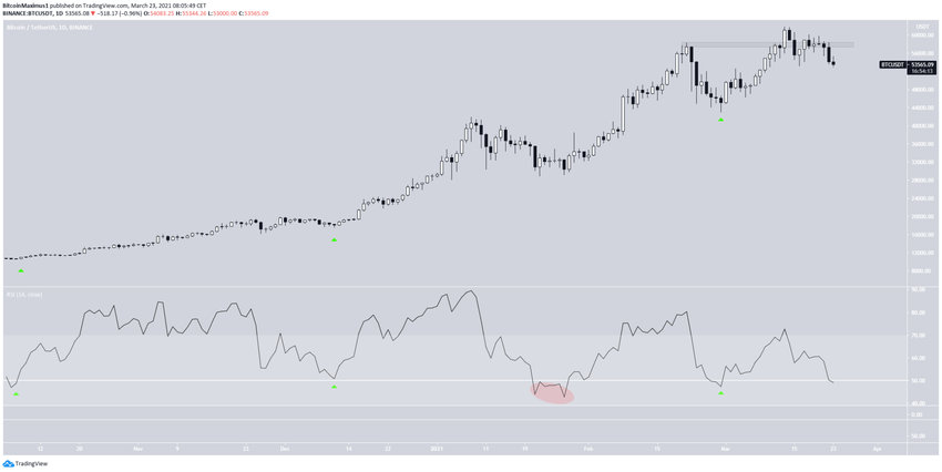 Warto wspomnieć, że RSI przekroczył linię 50 w października 2020 r., kiedy cena wynosiła 10 500 USD.