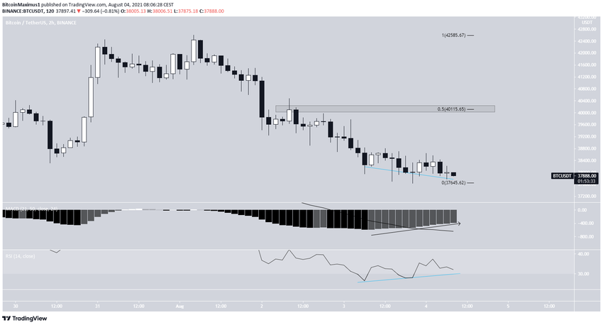 Wykres dwugodzinny dla BTC wspiera możliwość odbicia. Wygląda na to, że ruch spadkowy spowalnia i stopniowo zmienia się w byczy, co widać na MACD.