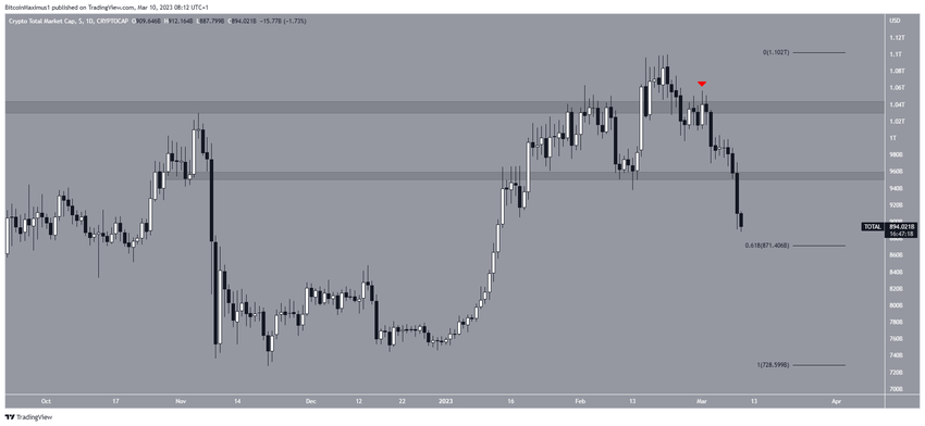 Ruch w dół był szybki. TOTALCAP załamał się z obszaru wsparcia przy 945 mld USD w dniu 9 marca.