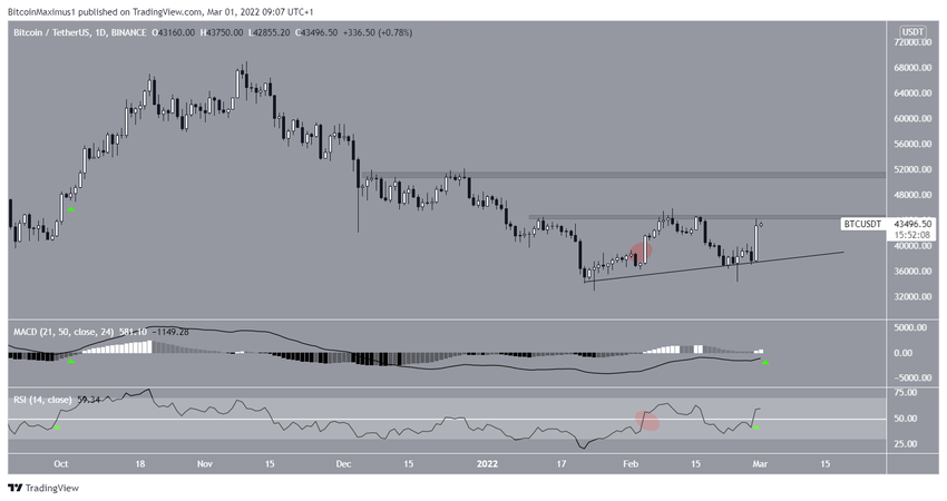 Bitcoin (BTC) wzrósł znacząco w dniu 28 lutego, a jego RSI i MACD są bliskie wygenerowania silnego, byczego sygnału.