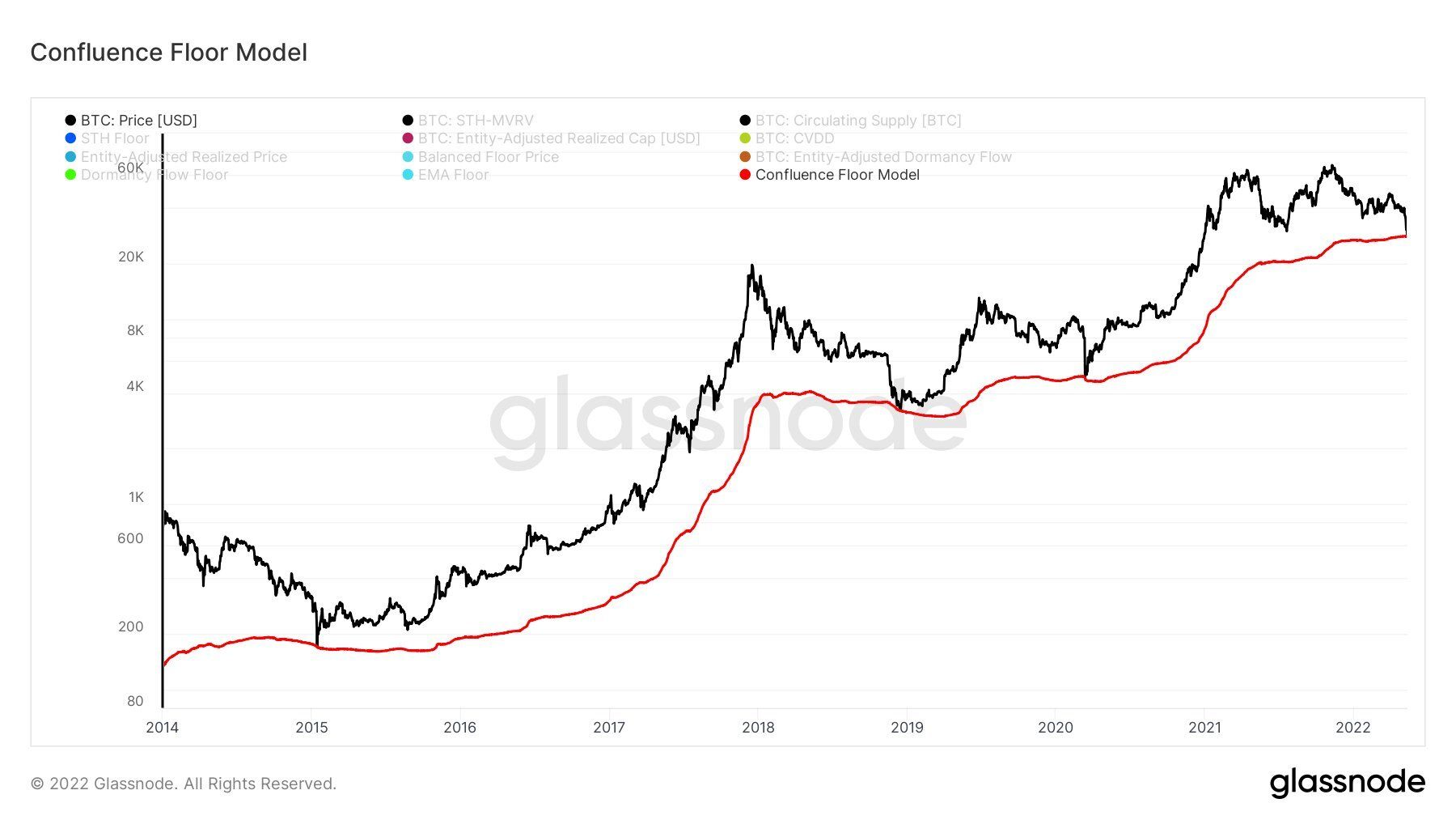 Jednak niektórzy wciąż jeszcze nadzieje wiążą z jednym modelem, który daje szansę na zatrzymanie dramatycznego spadku. Jest to Confluence Floor Model, którego autorem jest popularny analityk rynku krypto @TheRealPlanC. BeInCrypto pisało na temat tego modelu, gdy został on po raz pierwszy zaprezentowany dwa miesiące temu.