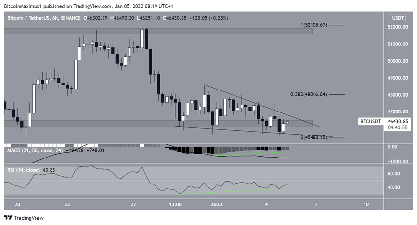 Bliższe spojrzenie na ruch ceny pokazuje, że Bitcoin handluje wewnątrz klina zniżkującego od dnia 28 grudnia. Klin jest zwykle uważany za byczą formację, więc wybicie z niego byłoby najbardziej prawdopodobnym scenariuszem.