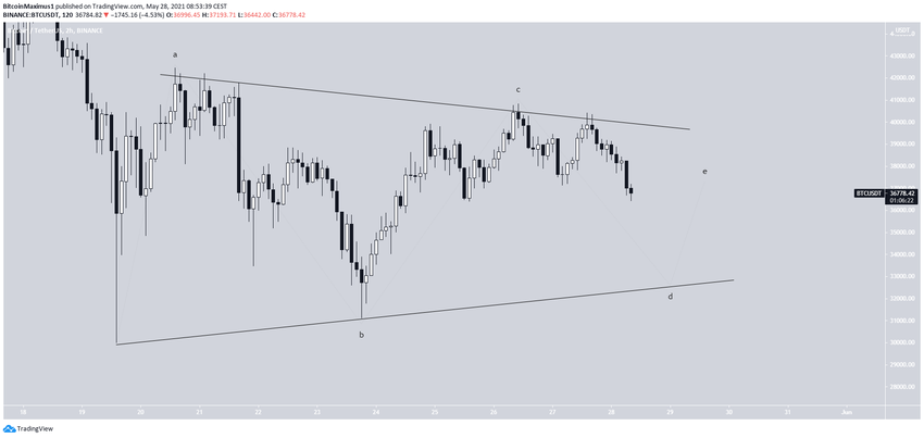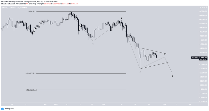 Istnieje jednak możliwość, że spadek był niedźwiedzim impulsem i BTC jest teraz w fali czwartej.