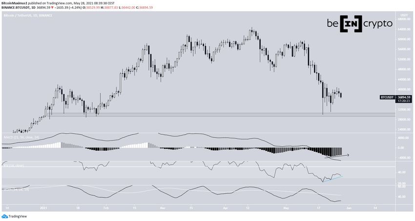BTC rośnie od dnia 19 maja, kiedy osiągnął dołek na poziomie 30 000 USD. Udało mu się osiągnąć lokalny szczyt w wysokości 40 841 USD w dniu 26 maja. Jednak od tamtej pory spada.