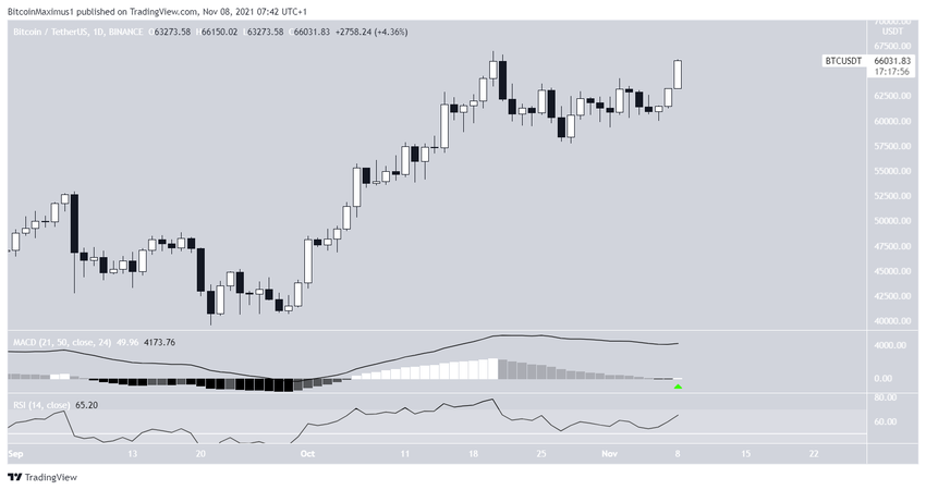 Wykres dzienny pokazuje, że Bitcoin jest w trakcie tworzenia dużej byczej świecy i porusza się w kierunku ATH na poziomie 67 000 USD.