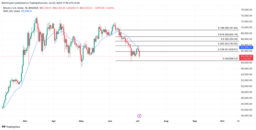 Jeśli ten trend się utrzyma, cena BTC może spaść do 58 698 USD.
