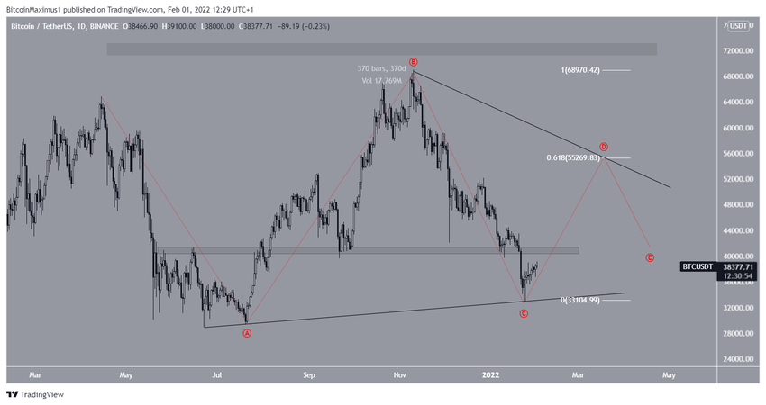 W tym scenariuszu BTC wzrastałby w kierunku 55 250 USD, poziomu oporu przy zniesieniu 0,618 Fib przed ponownym spadkiem. Cały ruch dopełniłby trójkąt symetryczny, z którego ewentualne wybicie byłoby prawdopodobne.