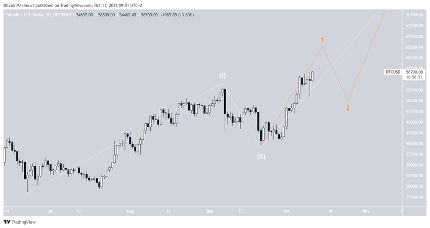 Po drugie, krótkoterminowy rachunek pokazuje, że BTC znajduje się w piątej i ostatniej podfali obecnego wzrostu.