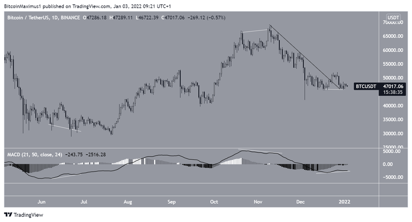 Bitcoin znacznie spadł w tygodniu 27 grudnia – 2 stycznia, osiągając dołek na poziomie 45 678 USD. Odbił się jednak później i zdołał zamknąć tygodniową świecę na poziomie 47 286 USD. Było to kluczowe, ponieważ poprzednia bycza świeca pochłaniająca nie została unieważniona.