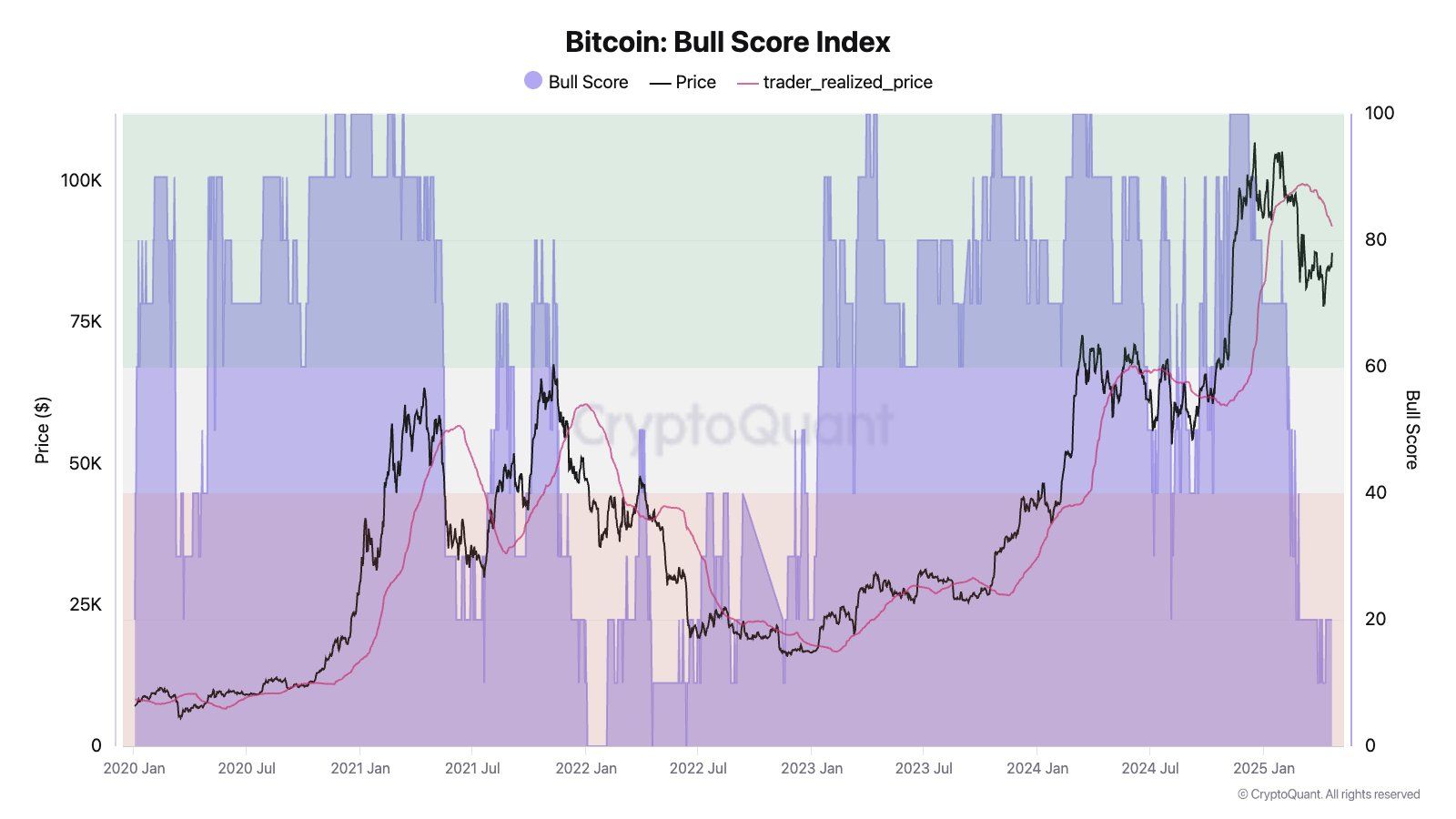 Szef badań w CryptoQuant, Julio Moreno, napisał na X, że opór cenowy Bitcoina może wynosić od 91 000 do 92 000 USD. Jest to zgodne z ceną zrealizowaną on-chain mierzoną przez traderów. Według analizy, podczas rynku byka (wskaźnik rynku byka ≥ 60), ta zrealizowana cena często działa jako wsparcie. Natomiast w rynku niedźwiedzia (wskaźnik rynku byka ≤ 40) służy jako opór. Obecny nadal realizuje ten drugi scenariusz.