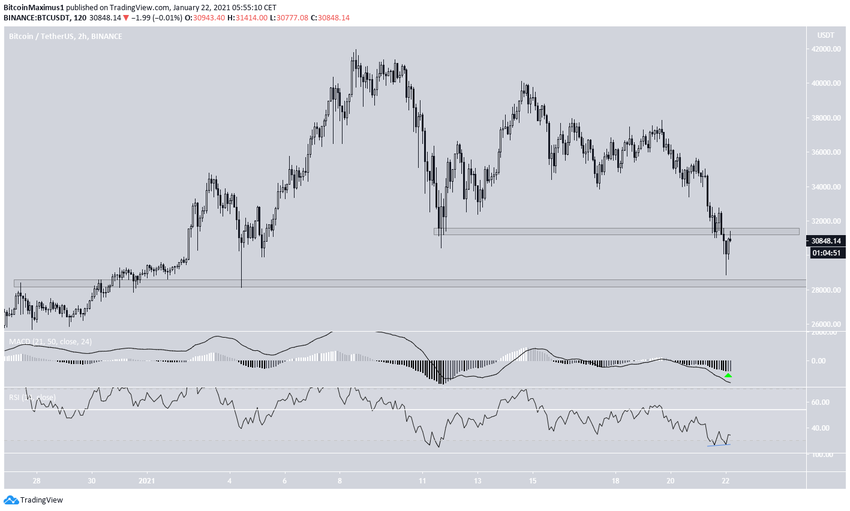 Cena Bitcoina (BTC) znacznie spadła w dniu 21 stycznia i na krótko dotknęła lokalnego dołka na 28 800 USD we wczesnych godzinach 22 stycznia.