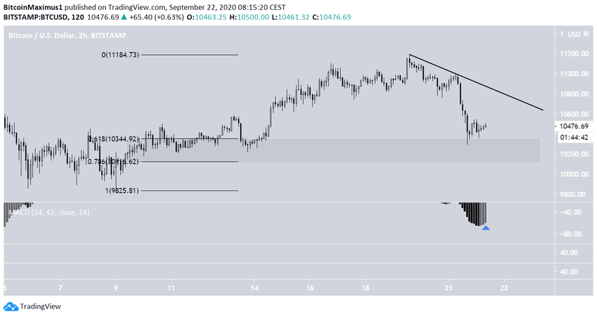 BTC najwyraźniej znalazł wsparcie i odbił się powyżej poziomu 0,618 Fib całego ruchu w górę. Poziomy 0,618-0,786 między 10 116 a 10 344 USD są istotne do działania jako wsparcie. Spadek poniżej tej strefy prawdopodobnie spowodowałby, że cena odnotowałaby niższe dołki w porównaniu z cenami z dnia 4 września.