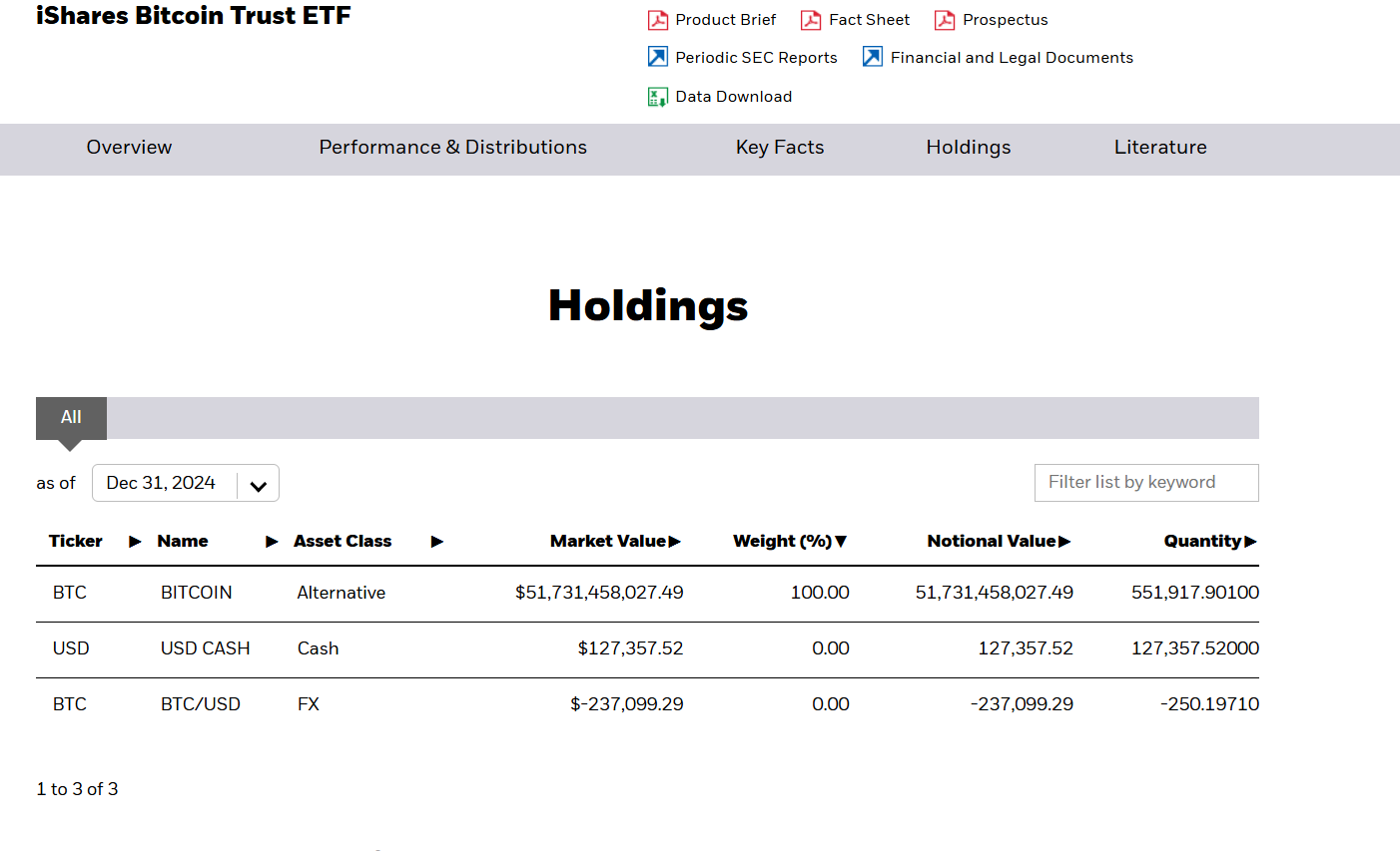 Na dzień 31 grudnia IBIT posiada ponad 551 000 BTC. Od momentu uruchomienia IBIT, BlackRock nabył ponad 2,38% wszystkich Bitcoinów, które kiedykolwiek będą istnieć.