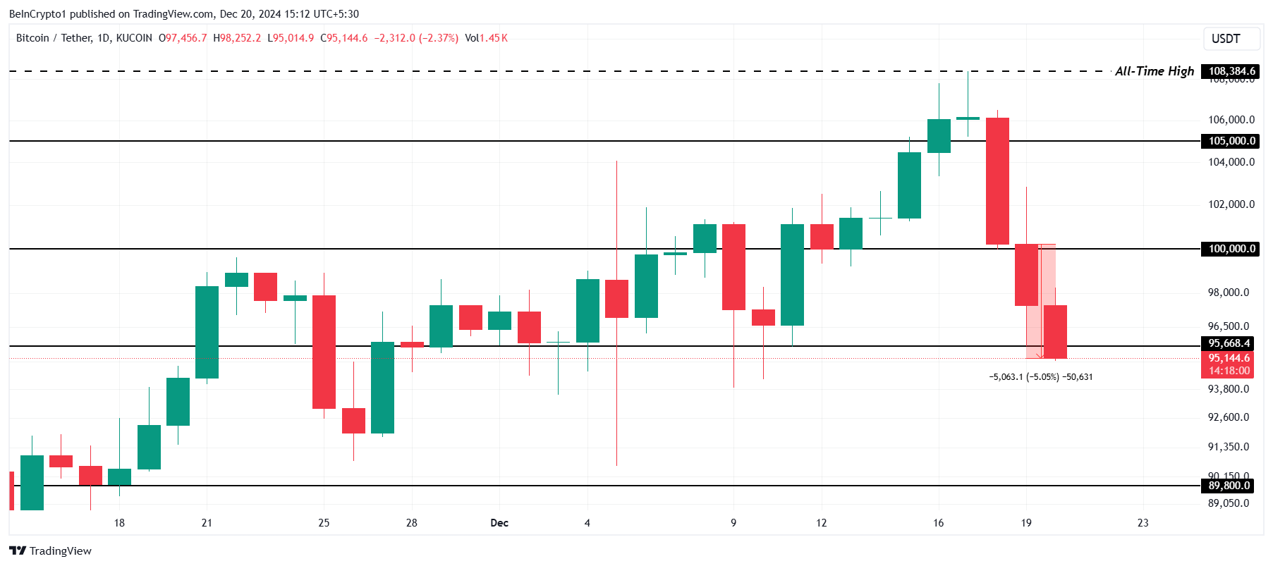 Największa kryptowaluta osiągnęła nowy rekord wszech czasów (ATH) na początku tego tygodnia, chwilowo przekraczając 108 000 USD. Jednak od tego czasu Bitcoin gwałtownie spada i obecnie znajduje się w okolicach 93 000 USD.