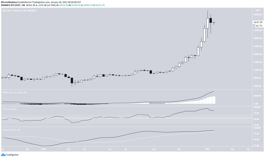 W tygodniu od 11 do 18 stycznia Bitcoin stworzył świecę wisielca (hanging man), która zwykle jest uważana za niedźwiedzi znak odwrócenia, gdy pojawia się podczas trendu wzrostowego.