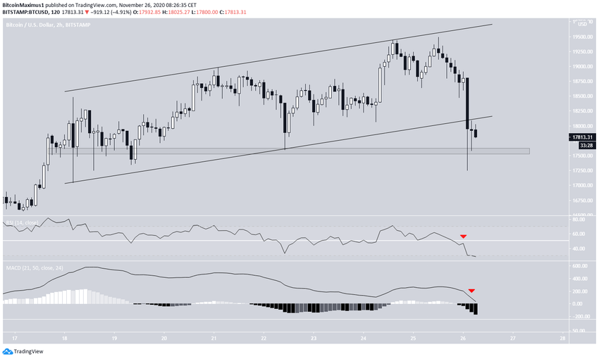 Cena Bitcoina podążała za paraboliczną, rosnącą linią wsparcia od dnia 5 września, kiedy rozpoczął się cały ruch w górę. Podążając za tą linią, BTC osiągnął maksimum na 19 490 USD w dniu 25 listopada, nieco poniżej rekordu wszech czasów na 19 666 USD.