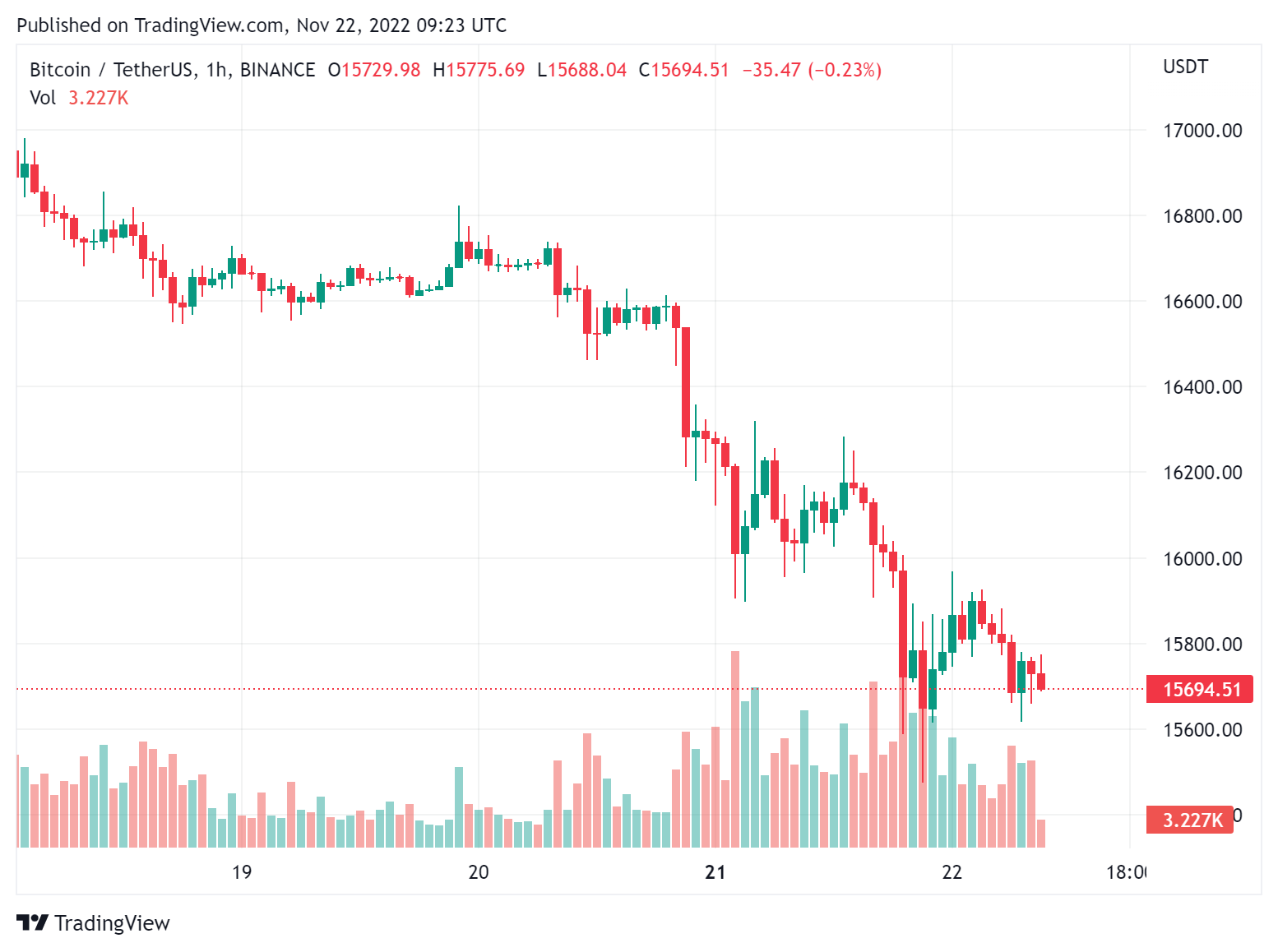 Bitcoin (BTC) zaczął spadać wczoraj rano, ale wciąż utrzymywał się powyżej poziomu 16 tysięcy dolarów. Wczoraj wieczorem zanurkował jednak poniżej 15 650 USD, a na niektórych giełdach nawet 15 450 dolarów.