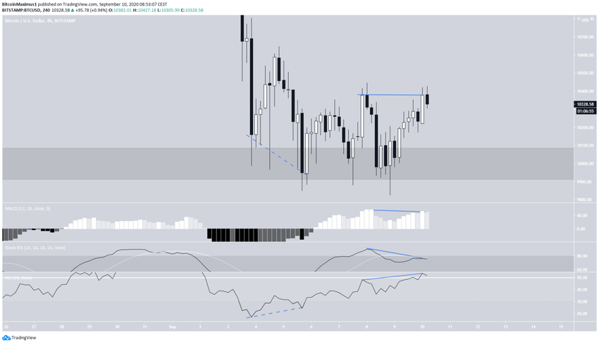 Cena Bitcoina rosła od najniższego poziomu na 9825 USD z dnia 5 września. Ten ruch w górę był poprzedzony znaczną byczą dywergencją na RSI w sześciogodzinnym interwale.