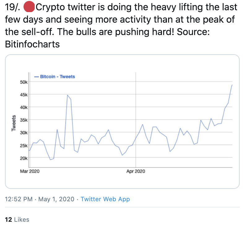 Co więcej, liczba tweetów o „Bitcoinie” rośnie od połowy kwietnia.
