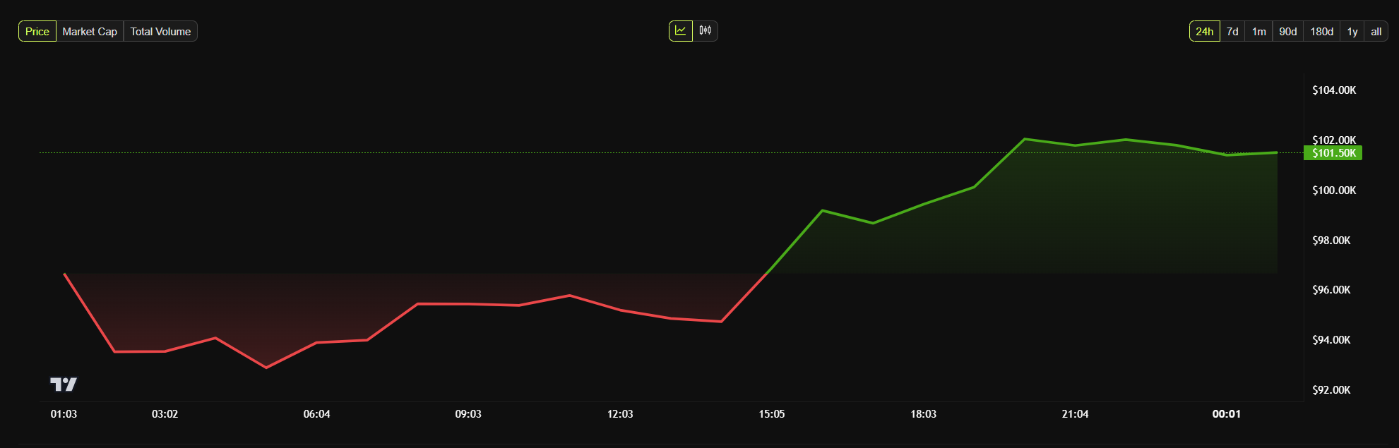Od czasu zawarcia umowy wszystkie główne kryptowaluty “Made in USA” odbiły się. Bitcoin i XRP w szczególności w dużej mierze odzyskały wartość po wcześniejszych likwidacjach. W momencie raportowania BTC wzrósł z powrotem do 102 000 USD.