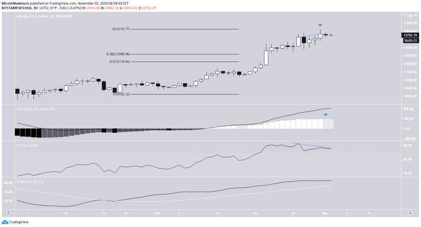 Miesiąc październik był hojny dla Bitcoin. BTC stworzył byczą świecę pochłaniającą i osiągnął szczyt na 14 100 USD, po czym nieznacznie spadł do poziomu 13 816 USD.