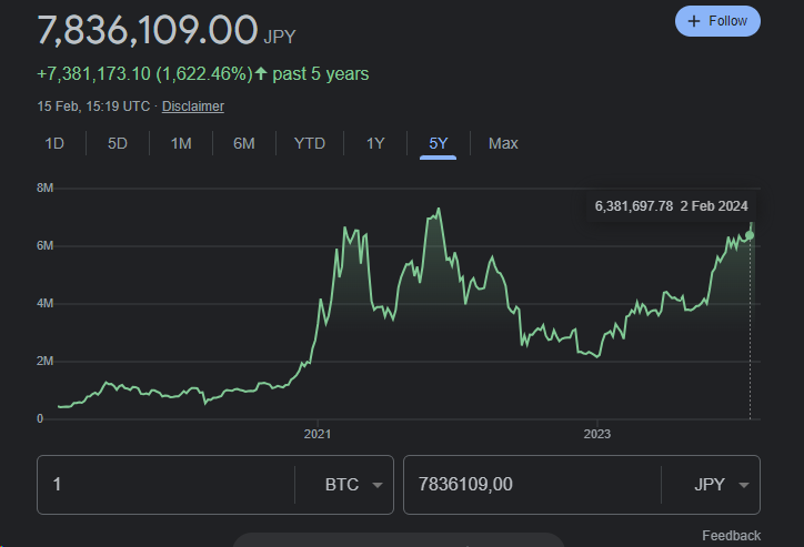 Bitcoin osiągnął ATH Japonii. Kurs 1 BTC wyniósł7 819 90 jenów. Ten rekord wszech czasów dla Bitcoina w stosunku do japońskiego jena miał miejsce w tym samym czasie, gdy krajowa waluta Japonii spadła do najniższego poziomu od 33 lat w stosunku do dolara amerykańskiego. Japoński bank centralny po prostu nie radzi sobie z uzyskaniem kontroli nad własną walutą.
