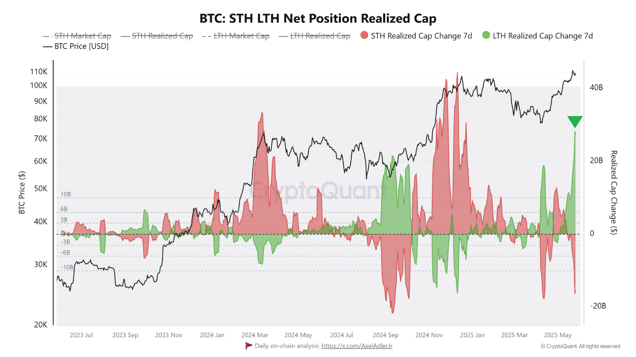 Dodatkowo, analityk on-chain Bitcoin w CryptoQuant zauważył, że gdy BTC spadło w okolice 111 000 USD i 109 000 USD, krótkoterminowi posiadacze używający nadmiernej dźwigni zostali zlikwidowani. Tymczasem długoterminowi posiadacze BTC (LTH) wykorzystali te spadki ceny, aby zwiększyć swoje zasoby Bitcoina.