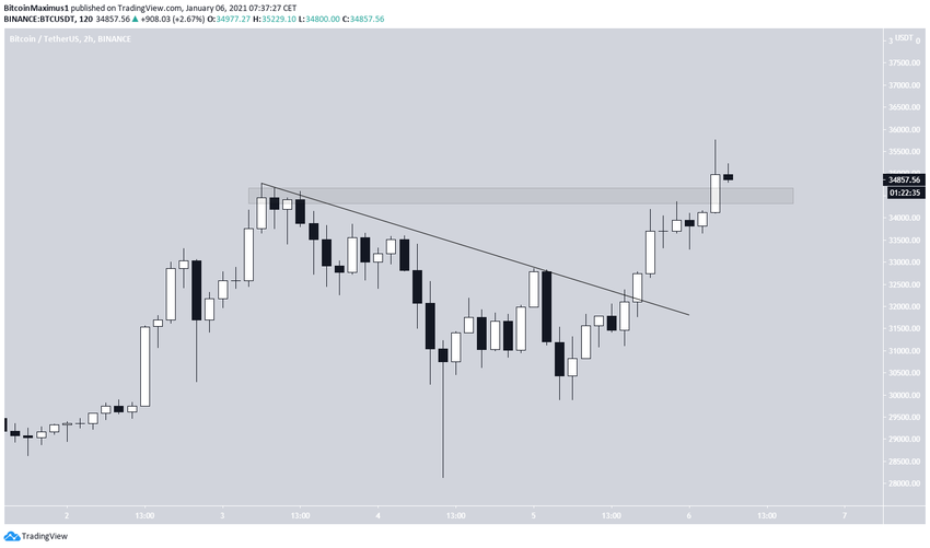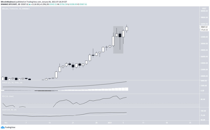 W dniu 6 stycznia BTC osiągnęło kolejny rekord wszech czasów na poziomie 35 879 USD.