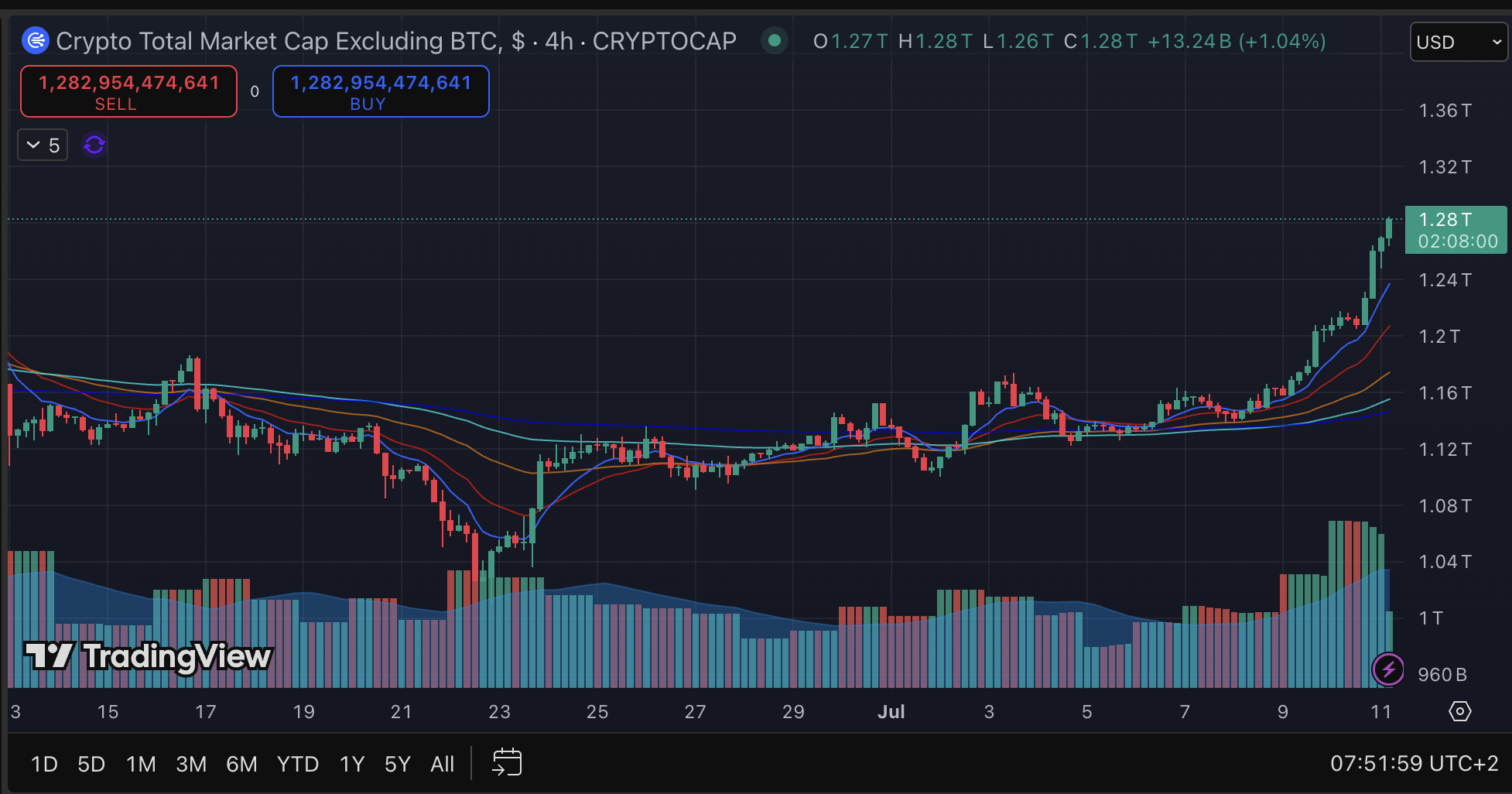 SponsoredDominacja Bitcoina (BTC.D) lekko spadła wczoraj po godzinie 23:00 – z 64,98% do 64,56%. Dziś rano jednak znowu zaczęła rosnąć, co może świadczyć o powrocie większego zainteresowania BTC. Warto jednak pamiętać, że nawet niewielkie zmiany dominacji mogą wpływać na ceny altcoinów. Sytuacja jest rozwojowa i wymaga stałej obserwacji.