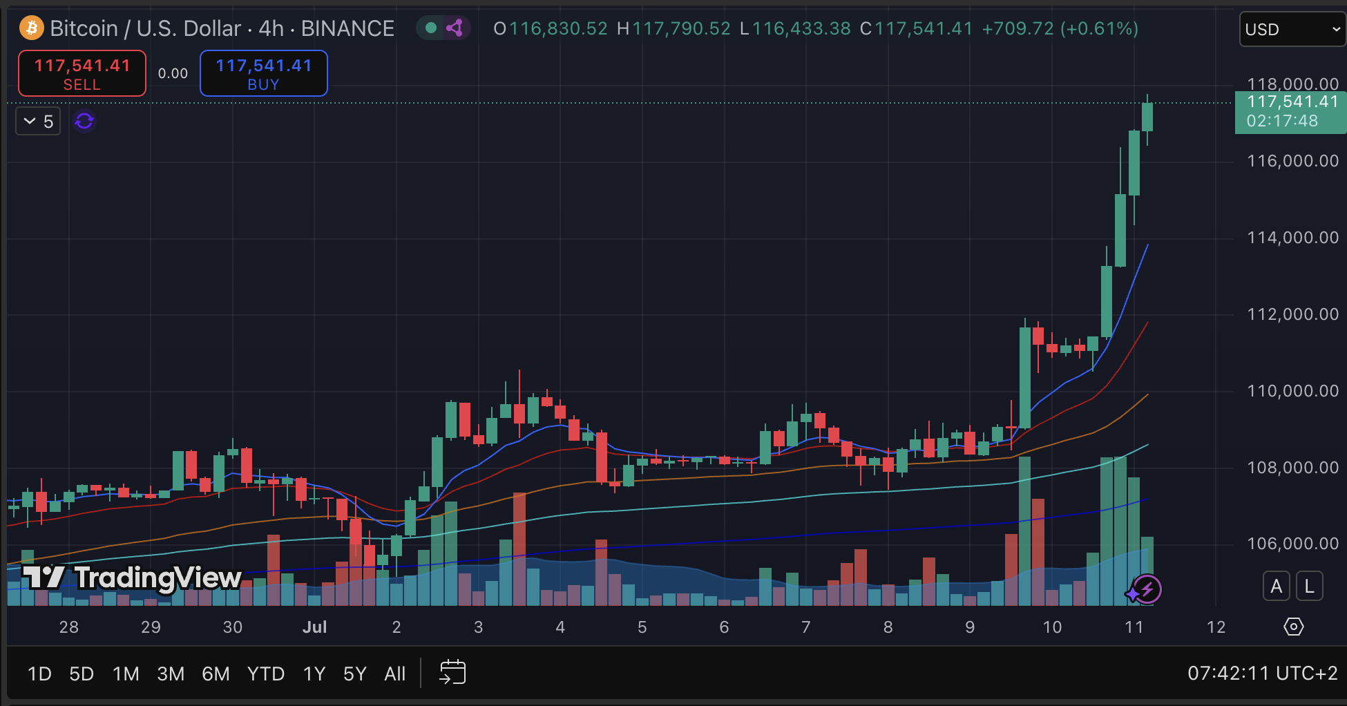 Bitcoin 11 lipca o godzinie 8:00 przekroczył poziom 118 000 USD. To już trzeci dzień z rzędu, gdy największa kryptowaluta ustanawia nowe ATH. Od wieczora 10 lipca cena wzrosła z okolic 116 000 USD, a jeszcze dzień wcześniej było to 112 000 USD. To bardzo szybkie tempo wzrostu, które pokazuje silne zainteresowanie inwestorów.