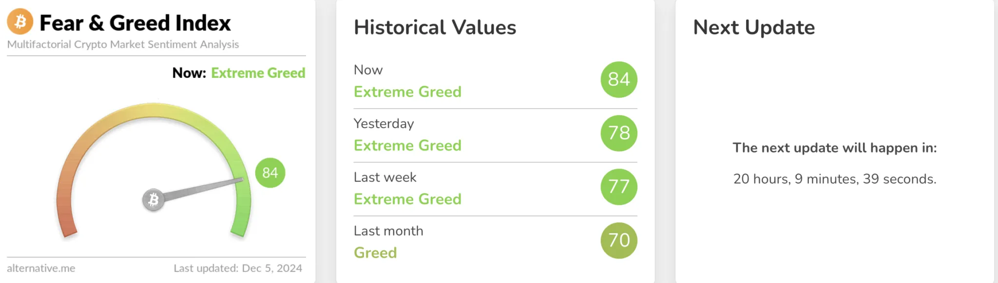 Jednocześnie wieloryby i długoterminowi posiadacze napędzali utrzymującą się dynamikę Bitcoina w ostatnim etapie. Jedno spojrzenie na wskaźnik strachu i chciwości pokazuje, że zdecydowana większość użytkowników przewiduje dalsze zyski i pozostaje w obszarze chciwości.