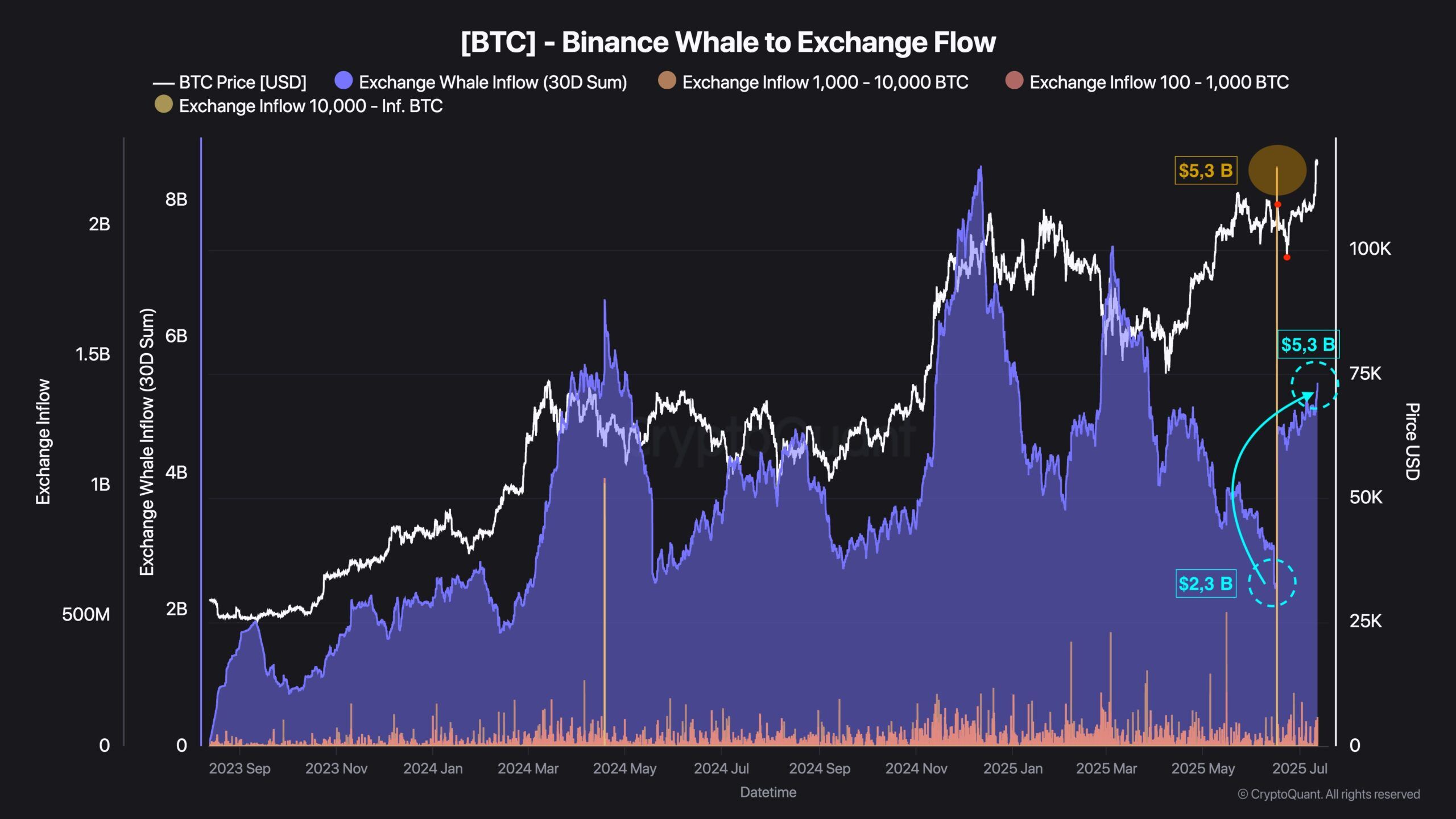 Sponsored„Co więcej, średnia miesięczna wartość napływu środków przekraczających 1000 BTC do Binance wzrosła w ostatnich tygodniach z 2,3 mld do 5,3 mld USD.”