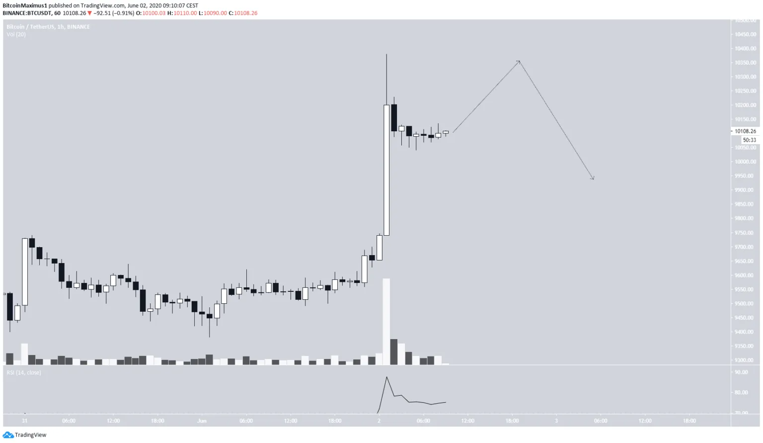 Spowodowało to wzrost ceny aż do oporu na poziomie 10.400 dolarów.