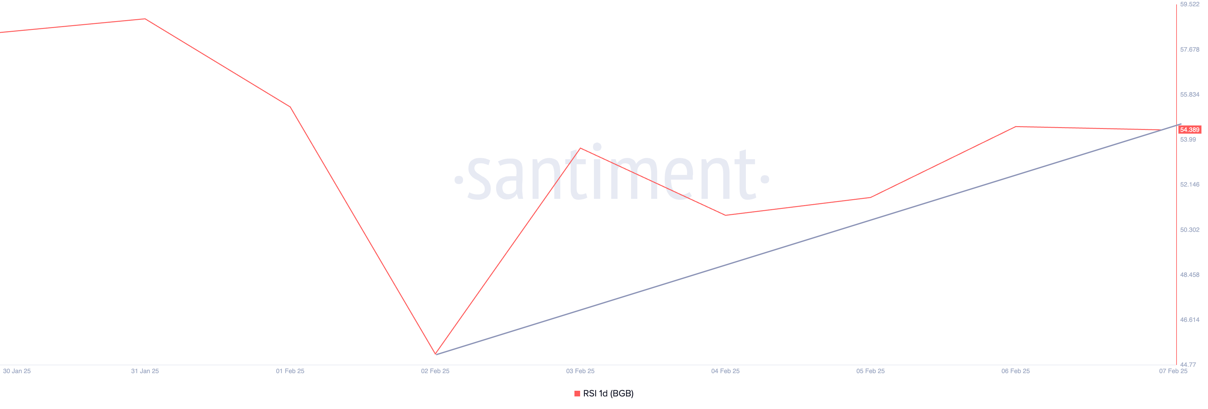 Co ważne, według danych on-chain, ten zaskakujący trend Bitget Token znalazł poparcie w stałym wzroście wskaźnika siły względnej (RSI), który potwierdza ten trend akumulacji. W momencie pisania tego tekstu kluczowy wskaźnik dynamiki wynosi 54,38 i jest w trendzie wzrostowym.