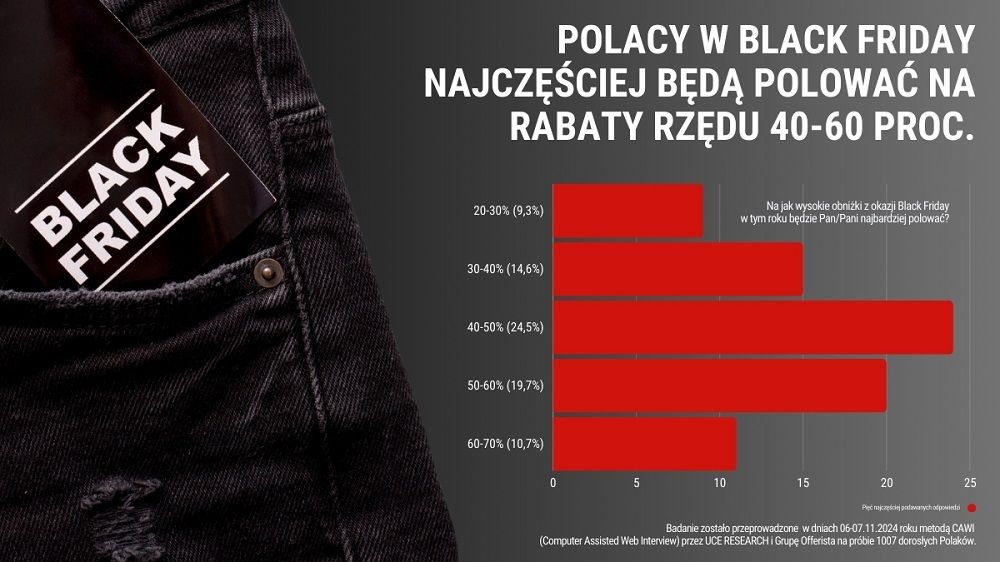 Zbliżający się Black Friday 2024 roku zapowiada się jako wyjątkowy dzień zakupowy dla Polaków. W tym roku przypadka na 29 listopada, w piątek. Na podstawie najnowszych badań widać, że konsumenci planują wyższe wydatki w porównaniu do poprzednich lat. Ponadto coraz bardziej zależy im na dużych rabatach.