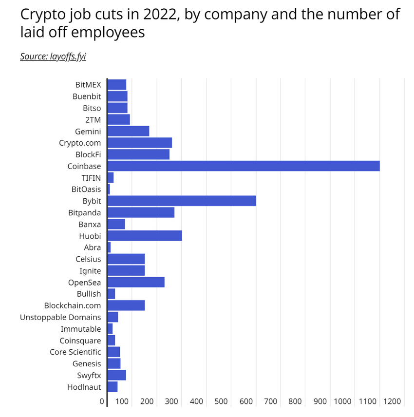 Blockchain.com zredukowało około jednej czwartej swojej siły roboczej w połowie 2022 r., gdy zima kryptowalutowa pogłębiła się. Co więcej, firma zwolniła 28% swoich pracowników w drugiej rundzie wypowiedzeń w styczniu 2023 roku.
