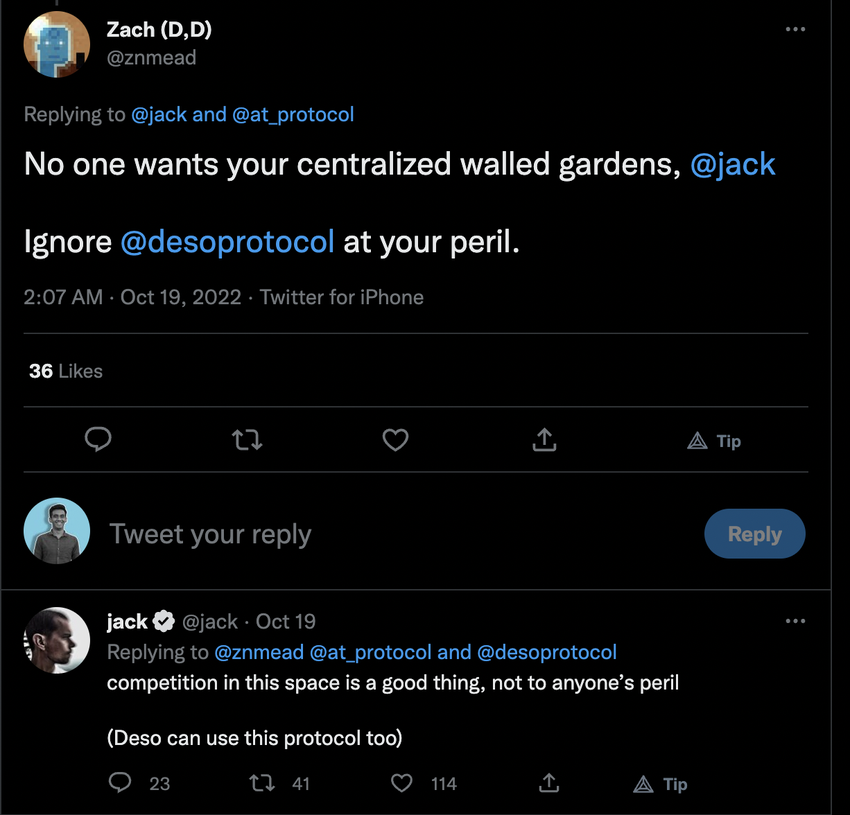 Jack Dorsey wspomniał, że z protokołu może korzystać każdy, nawet konkurencyjne DeSo.