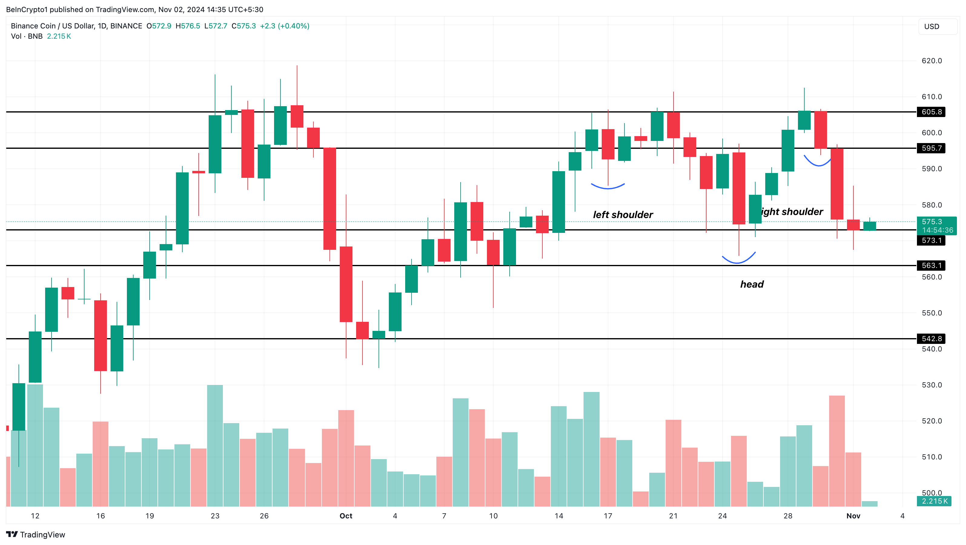Ponadto, cena BNB utworzyła wzór odwróconej głowy i ramion, sygnalizując potencjalne odwrócenie z pesymistycznego na optymistyczny moment. Biorąc pod uwagę tę strukturę techniczną, cena BNB może wzrosnąć powyżej oporu 596 USD i wzrosnąć do 606 USD.